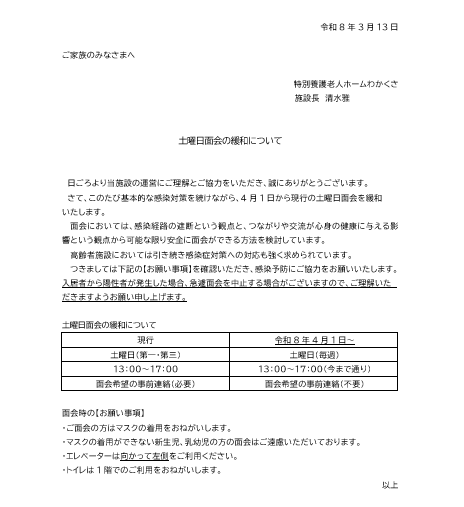 令和8年4月1日からの土曜日面会の緩和について
